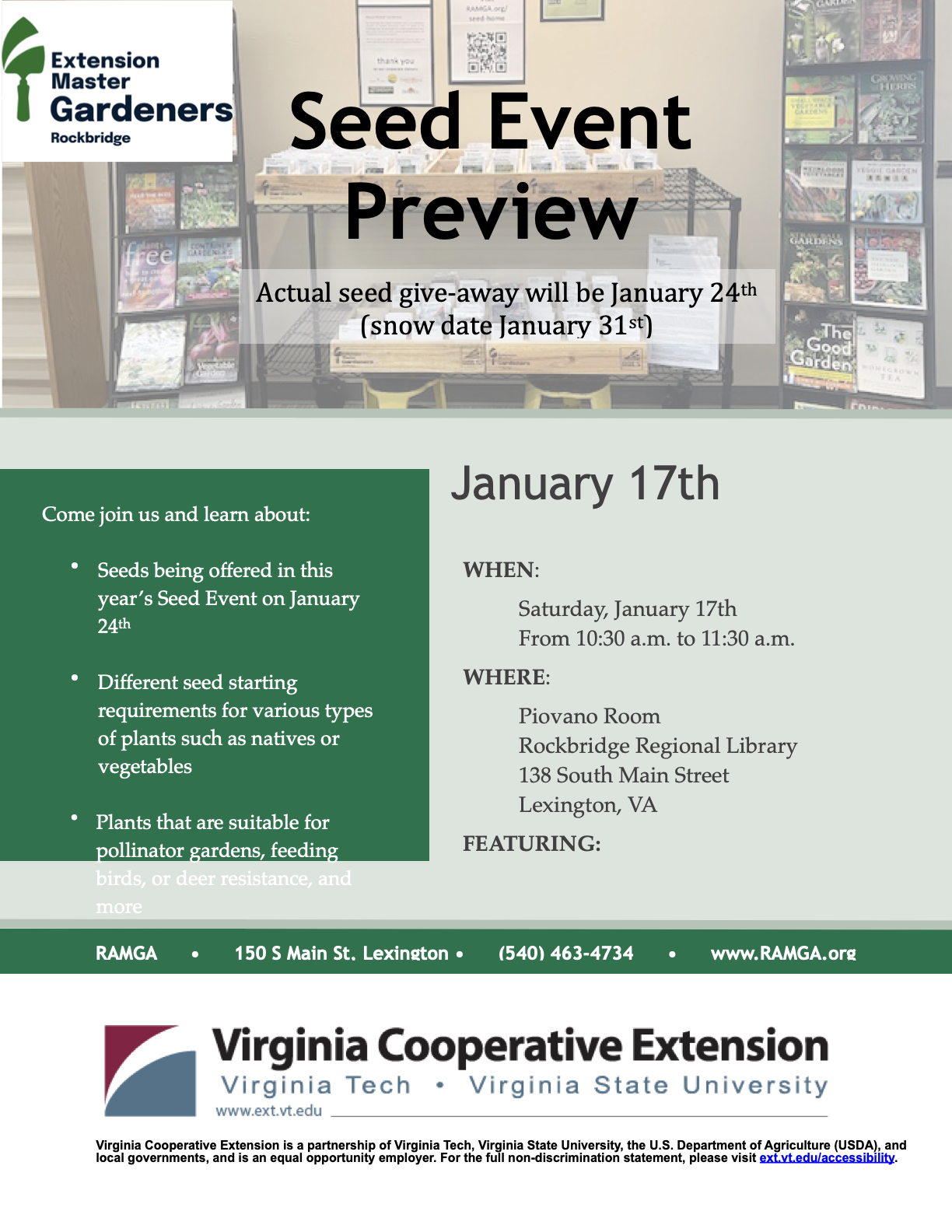 Every year, Rockbridge Area Master Gardeners (RAMGA) holds a community grant program. RAMGA will provide awards of between $300-$600 to nonprofits (including schools) for projects that align with RAMGA’s mission. Grant applications are due March 6, 2026.
